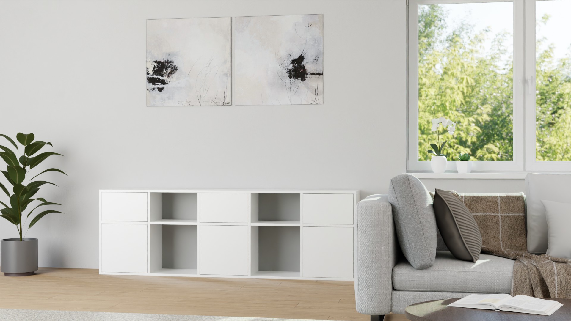 Schubladenschrank - 1.800x1.000 mm - 2 Schubladenreihen - 30x100 mm - 2x200 mm - Tragkraft 15 kg - reinweiß/tiefschwarz