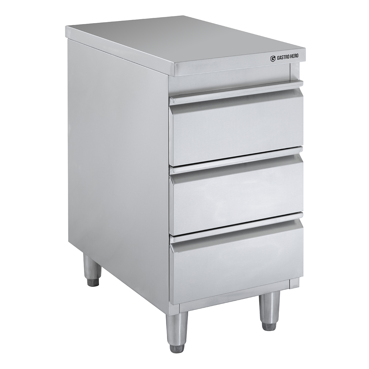 Gastro Edelstahl-Schubladenschrank BASIC 3er Einheit 700; Arbeitsschränke mit Schubladenblock, 3 Schubladen