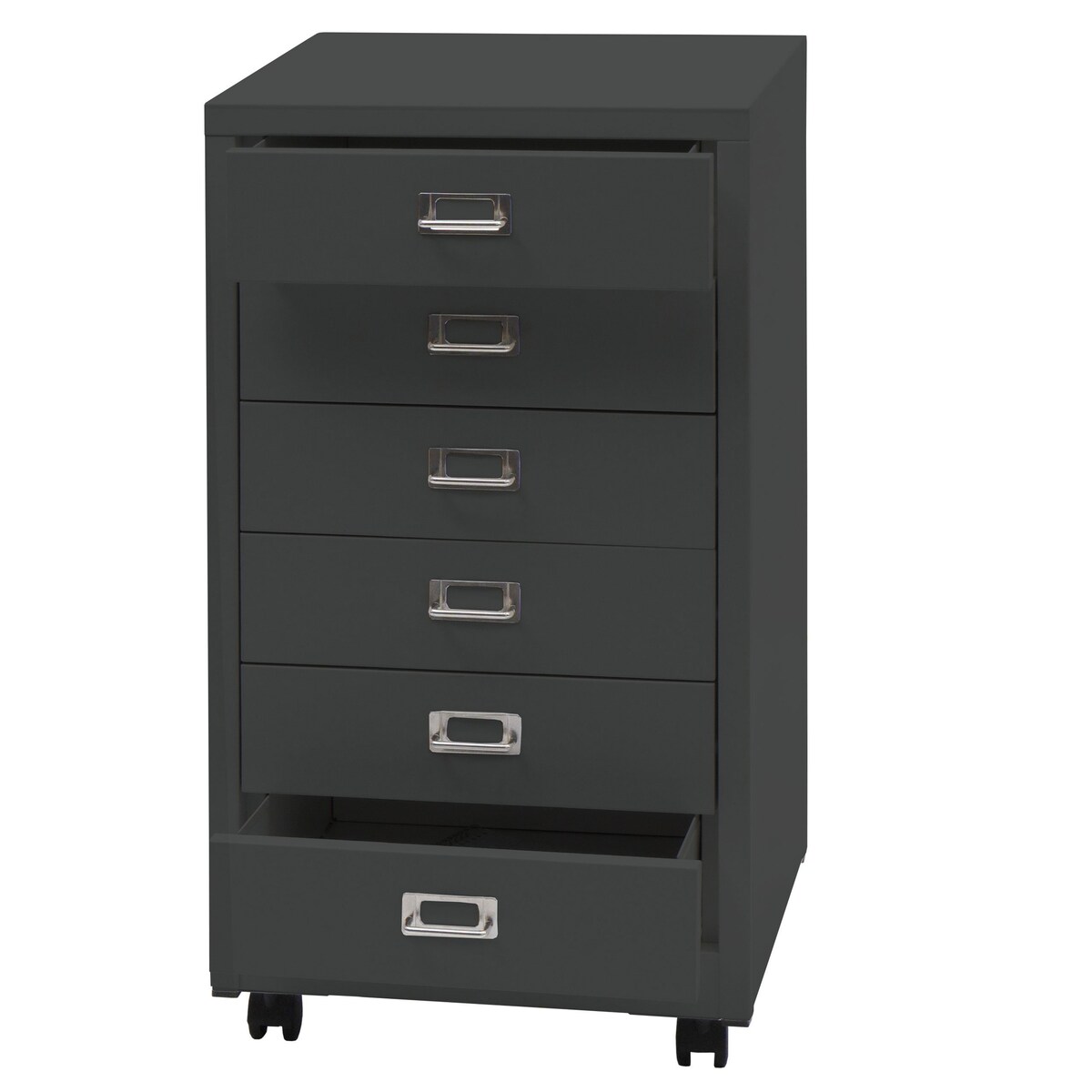 Rollcontainer Boston, Schubladenschrank aus Stahl, 69x28x41cm, 6 Schubladen - dunkelgrau weiß