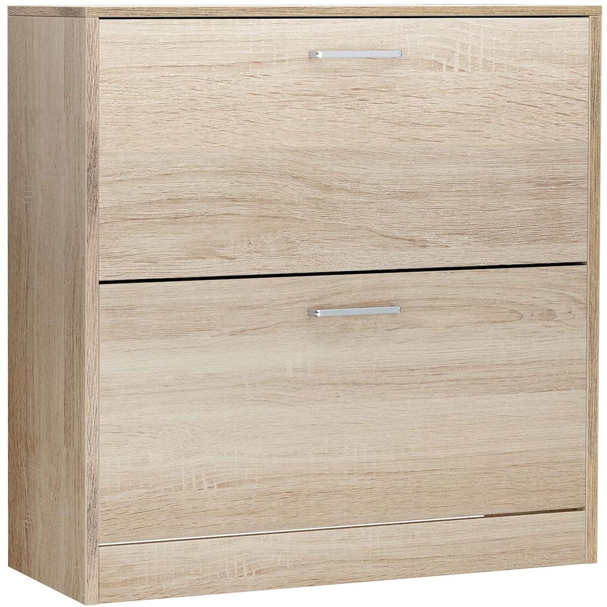 UAC Schuhschrank 60 x 24 x 83,5 cm, mit 2 Klappen, Schuhkipper, Schuhregal mit 3 Ebenen, Trennwände verstellbar, Schuhkommode, Eichen-Optik