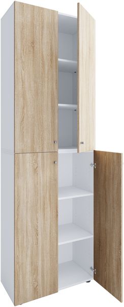 Schuhschrank >Lady< 20 Böden, weiss hochglanz / Eiche Nachbildung - 80x200x34 (BxHxT)