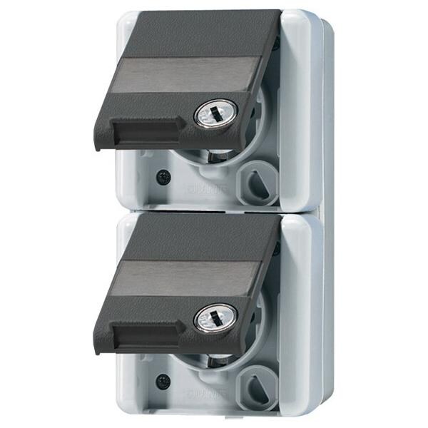 Berker 47733515 Steckdose SCHUKO 3fach waagr. m.Klappdeckel Ap W.1 grau/lichtgr. mt