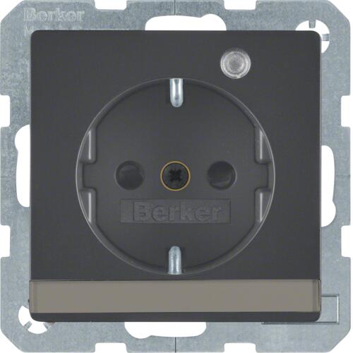 Berker 41106086 Steckdose SCHUKO mit Kontroll-LED, Beschriftungsfeld und erhöhtem Berührungsschutz, Q.1/Q.3, anthrazit samt, lackiert