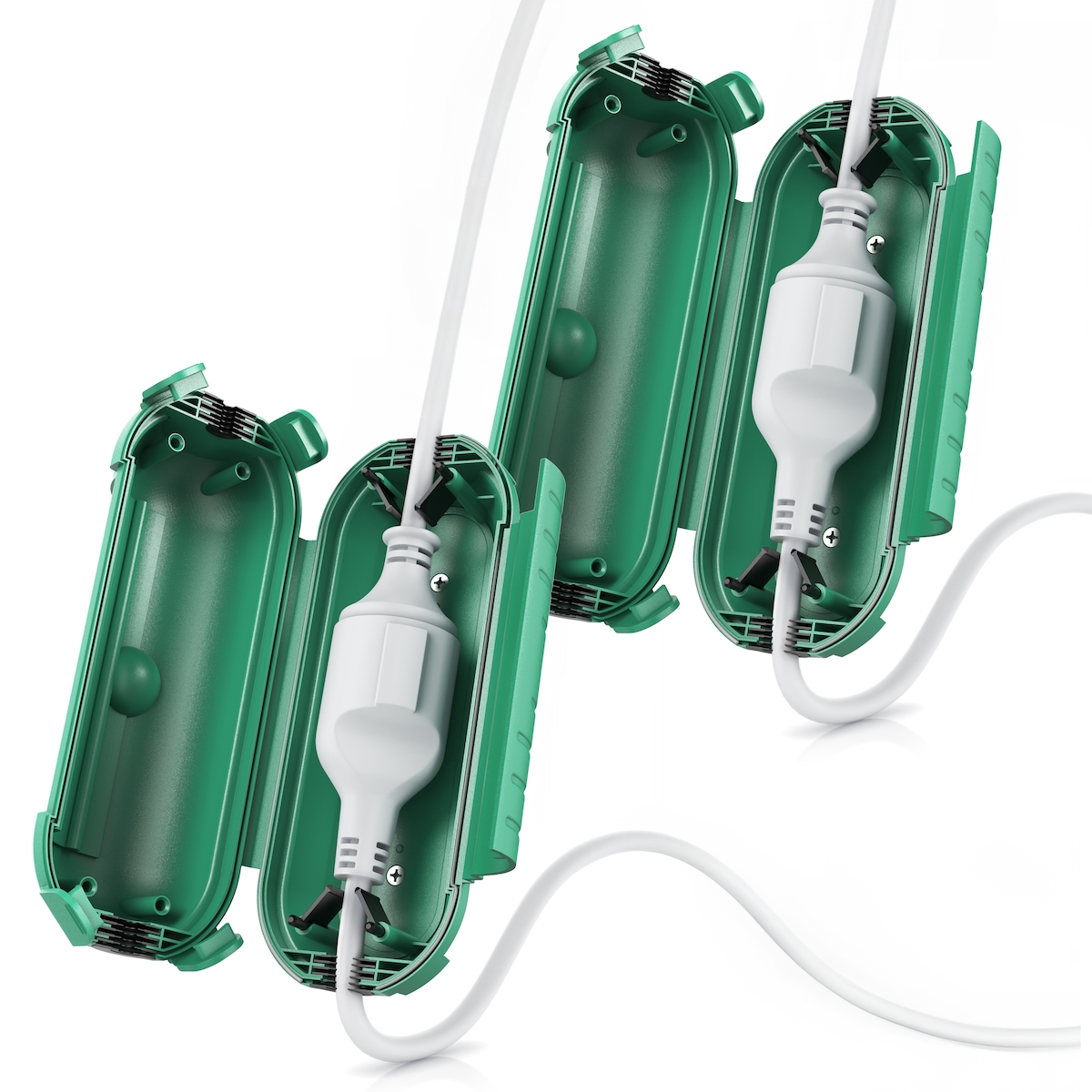 Brandson 2x Kabelbox wetterbeständige Schutzbox für Verlängerungskabel, 210mm x 85 mm Garten outdoor IP44 wasserdichte Safe Box, grün