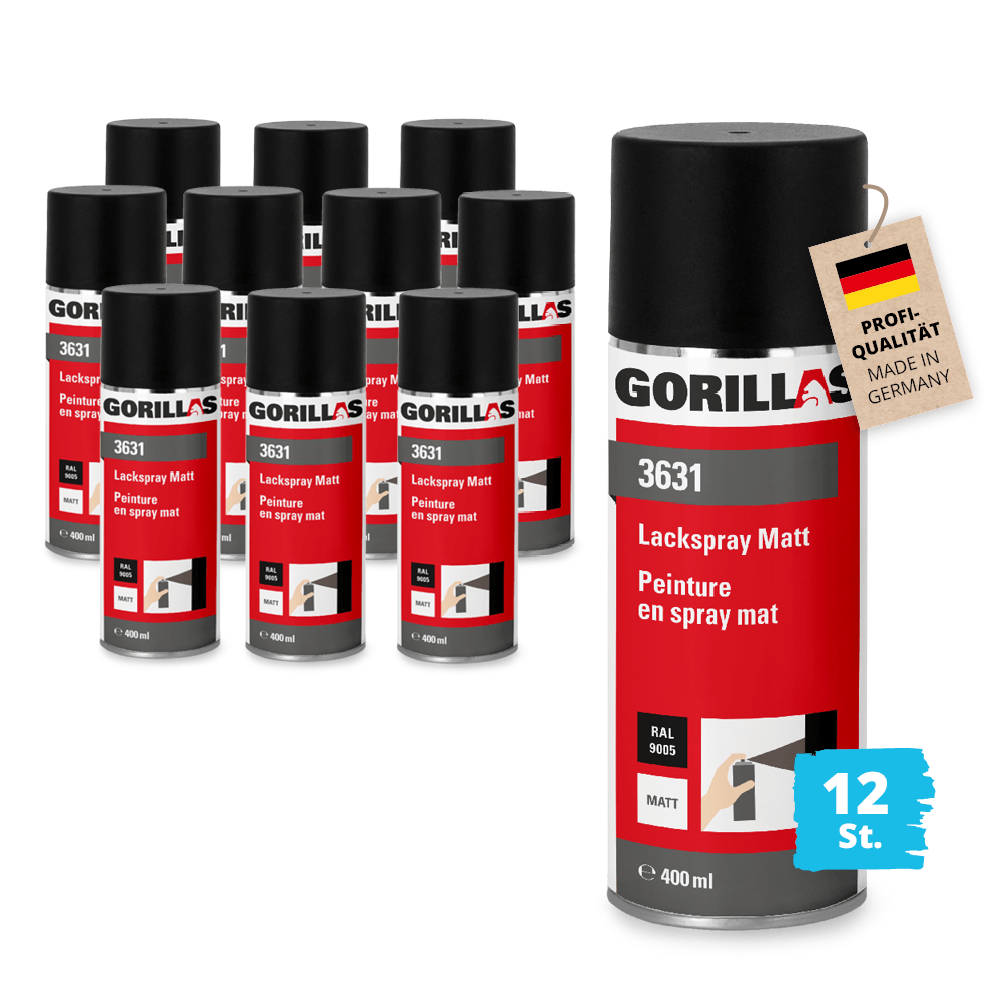 12x Gorillas Matt schwarz Sprühlack Farbspray Lack in Sprühdose Spraylack Sprühfarbe Lack-Aerosol Lackier-Spray