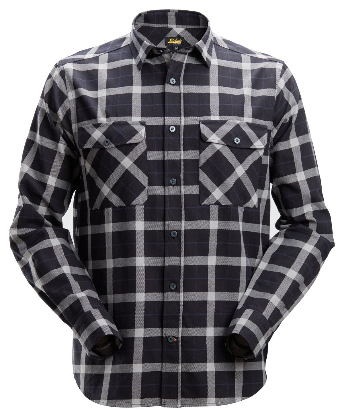 Snickers AllroundWork leichtes Baumwoll-Flanellhemd Schwarz-Grau - Herren / Unisex