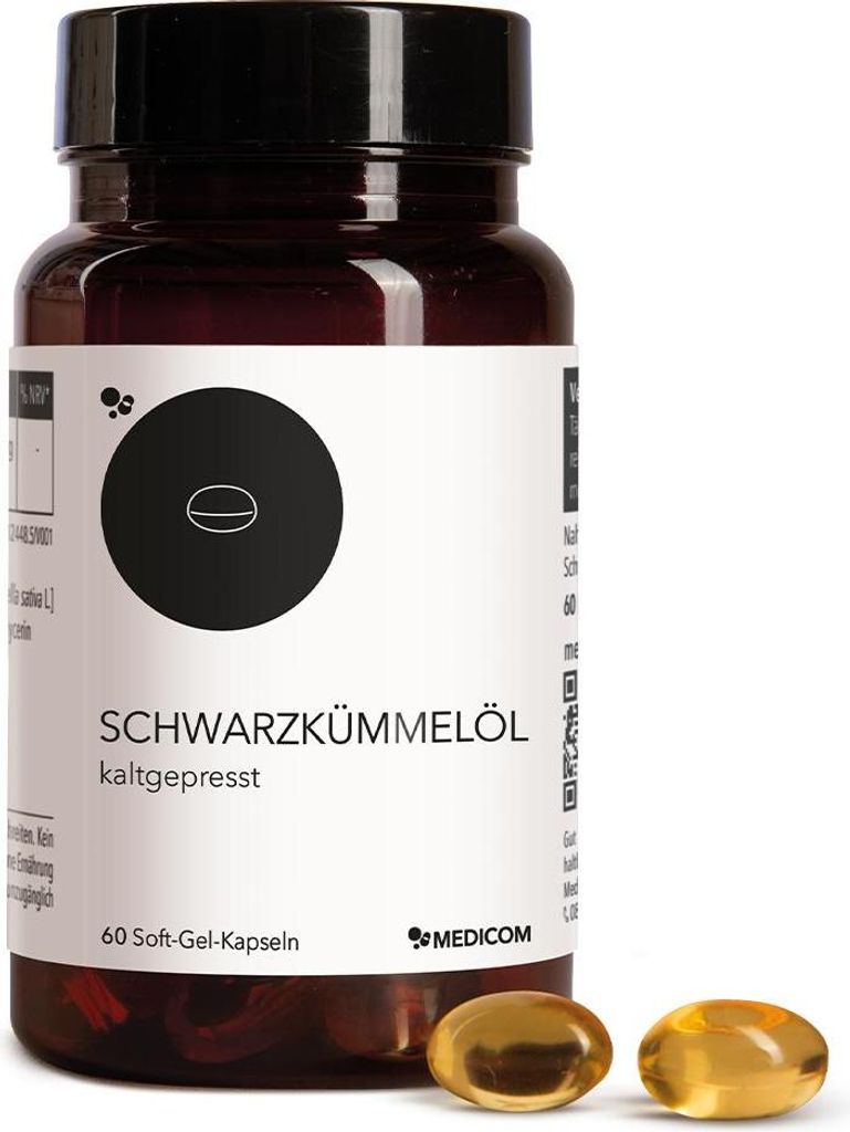 Medicom Schwarzkümmelöl mit 1.000 mg Schwarzkümmelöl, 60 Kapseln, für die Allergiezeit