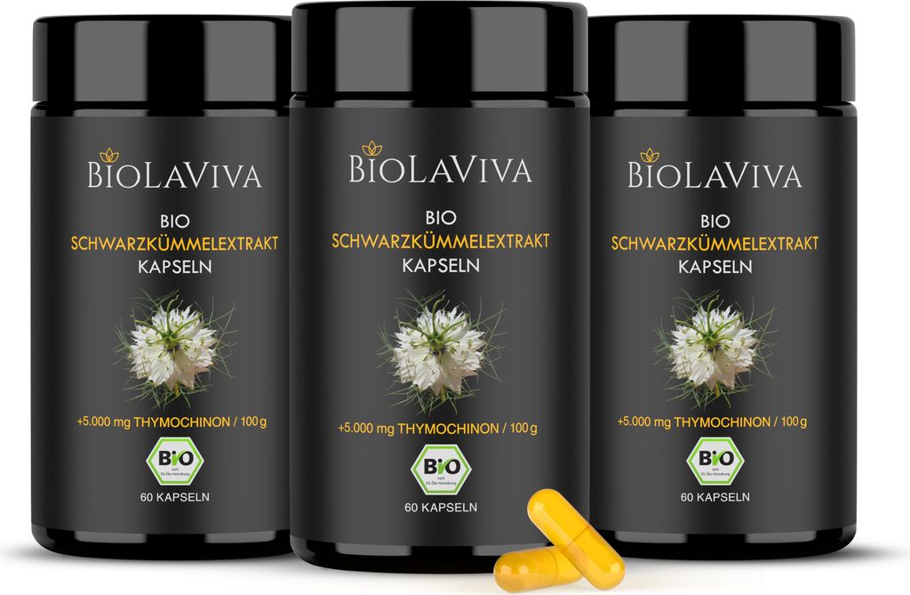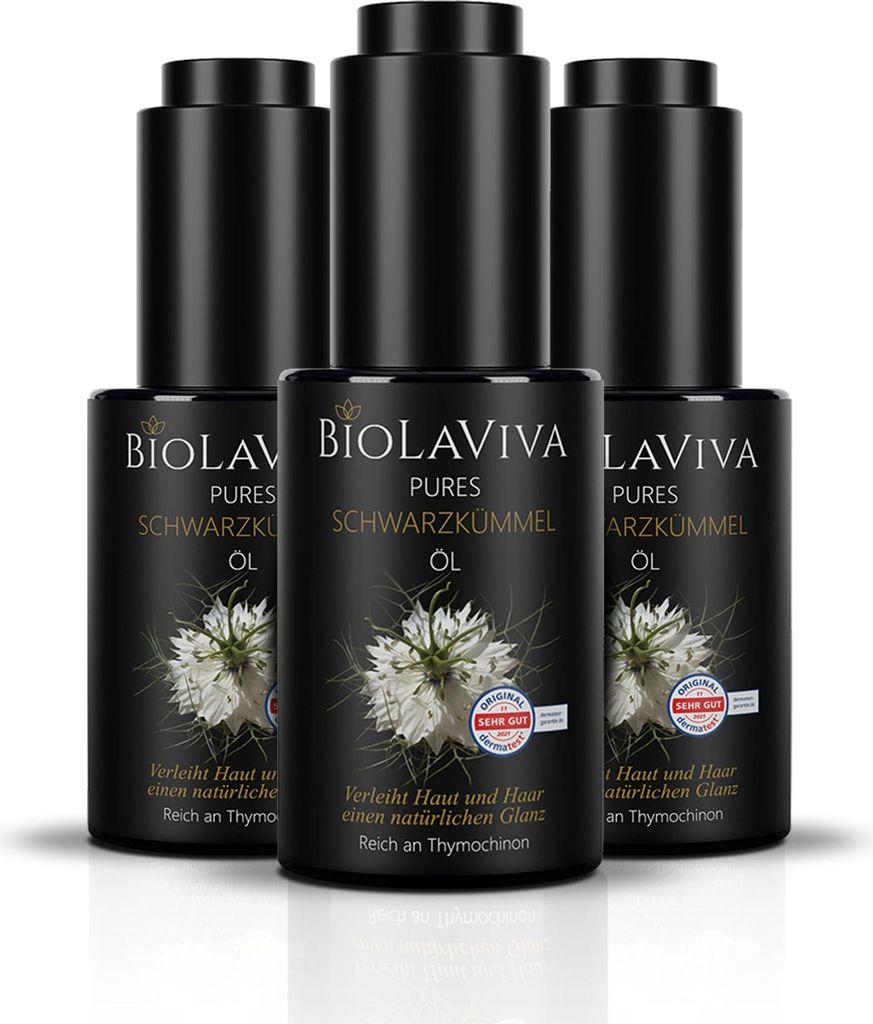BIOLAVIVA (3 x 30ml) Pflegeöl - Pures kaltgepresstes BIO Schwarzkümmelöl - Naturkosmetik für Haut und Haar - getestet "Note: 1"