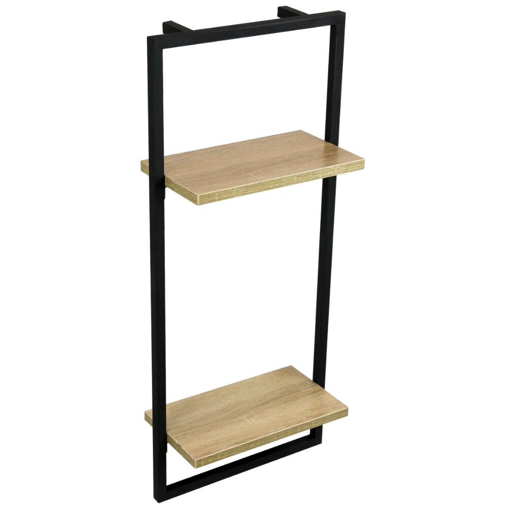 Eichenrahmen, Schwebende Regale, Wandregal, Fotoregal, Hängendes Badezimmerregal, Heimdekorationsaufbewahrung, 2er-Set, 2-stöckig (Schwarz)