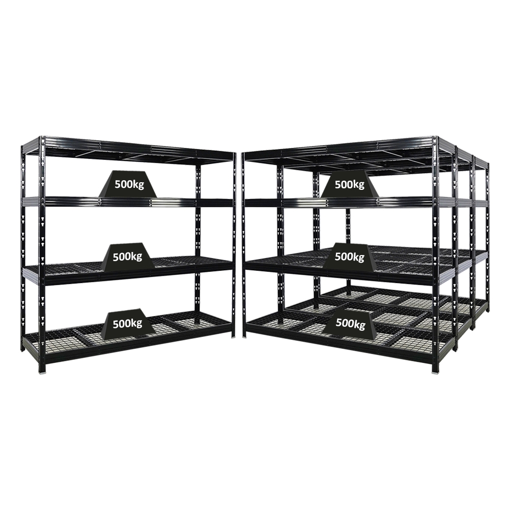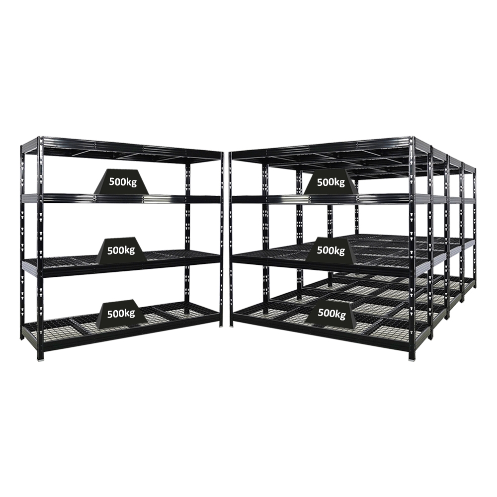 Mega Deal | 4x Profi Schwerlastregal Rhino | HxBxT 180x200x60cm | 4 Gitterrost-Ebenen | Fachlast 500kg | Schwarz