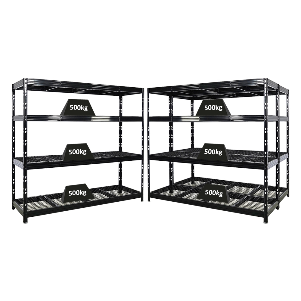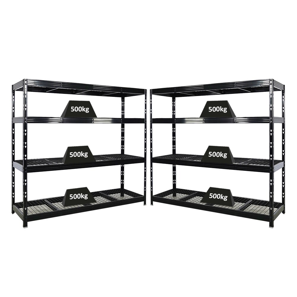Mega Deal | 2x Profi Schwerlastregal Rhino | HxBxT 180x200x60cm | 4 Gitterrost-Ebenen | Fachlast 500kg | Schwarz