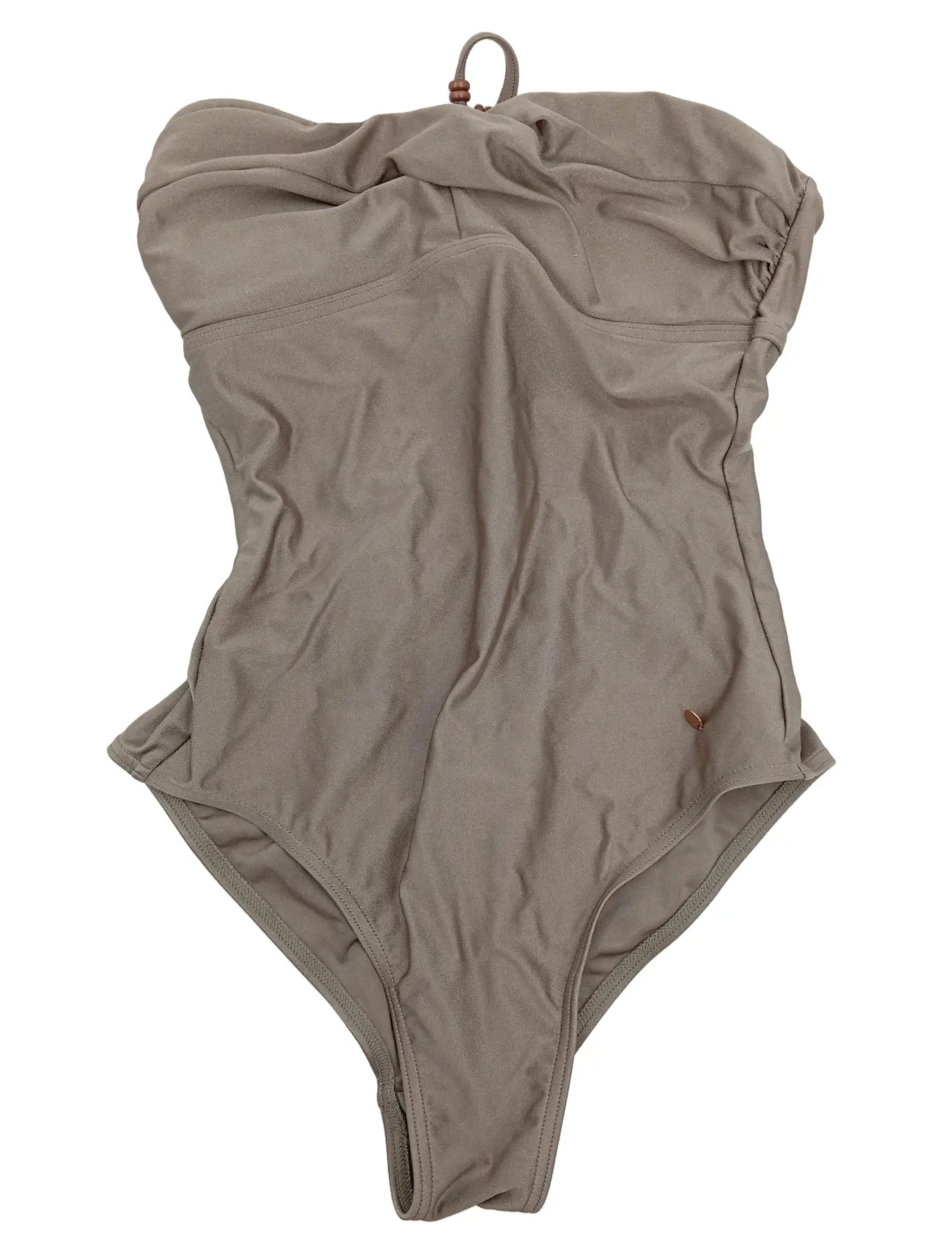 ESPRIT Badeanzug Damen Gr. 36 Beige Basic Neckholder Bandeau Schwimmanzug
