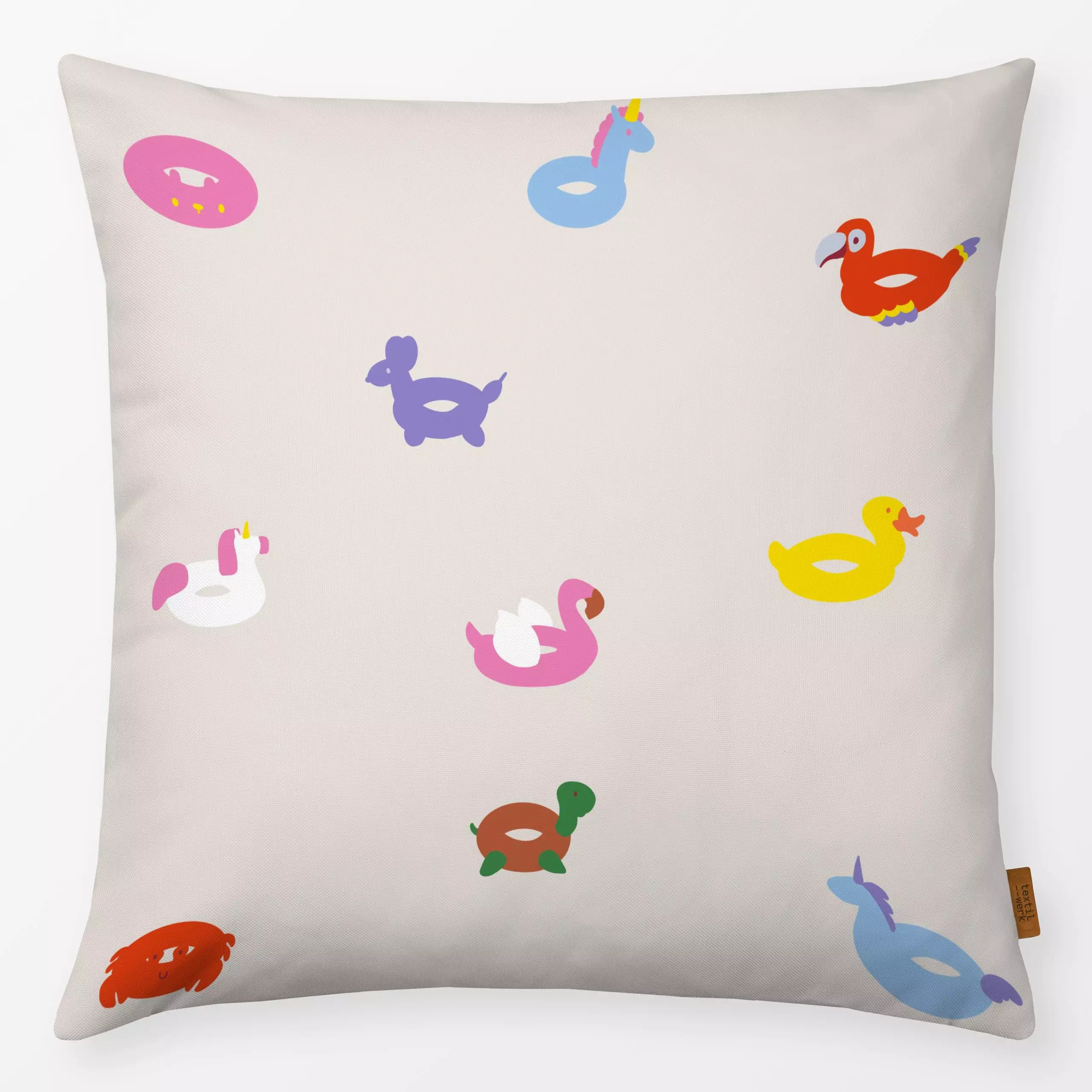 Kissen Schwimmreifen Muster - Sommer - von „textilwerk"; Illustration, skandinavisch, beige, Sommer, bunt, minimalistisch, s...