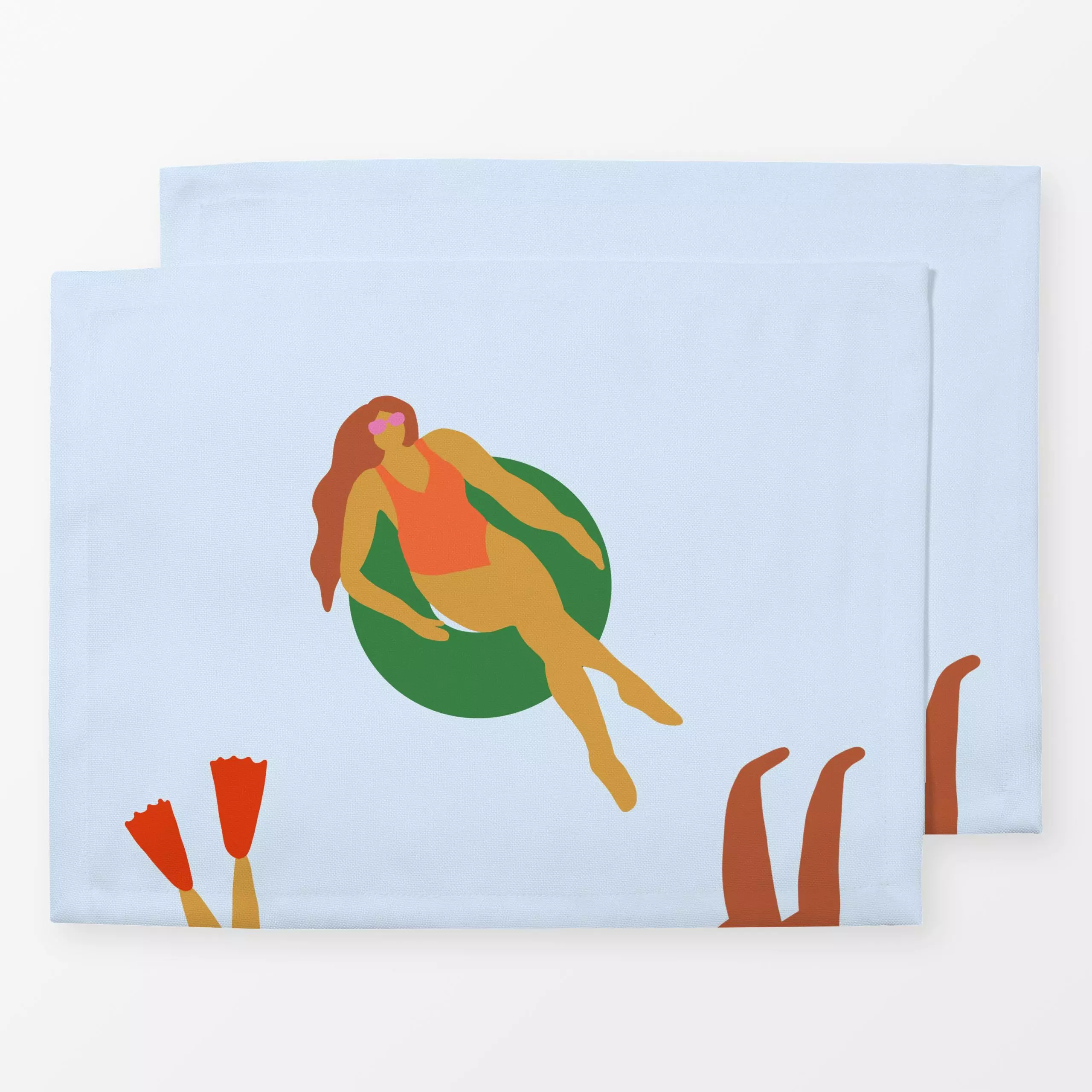 Servietten Schwimmreifen 6 - Sommer - von „textilwerk"; Illustration, skandinavisch, Sommer, Urlaub, bunt, minimalistisch, s...