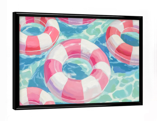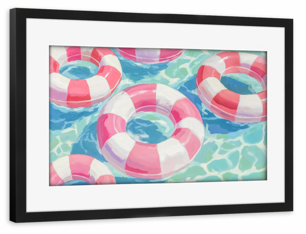 Poster mit schwarzem Rahmen "Fröhliche Schwimmreifen" artboxONE - Natur,Reise,Reise / Strand und Meer