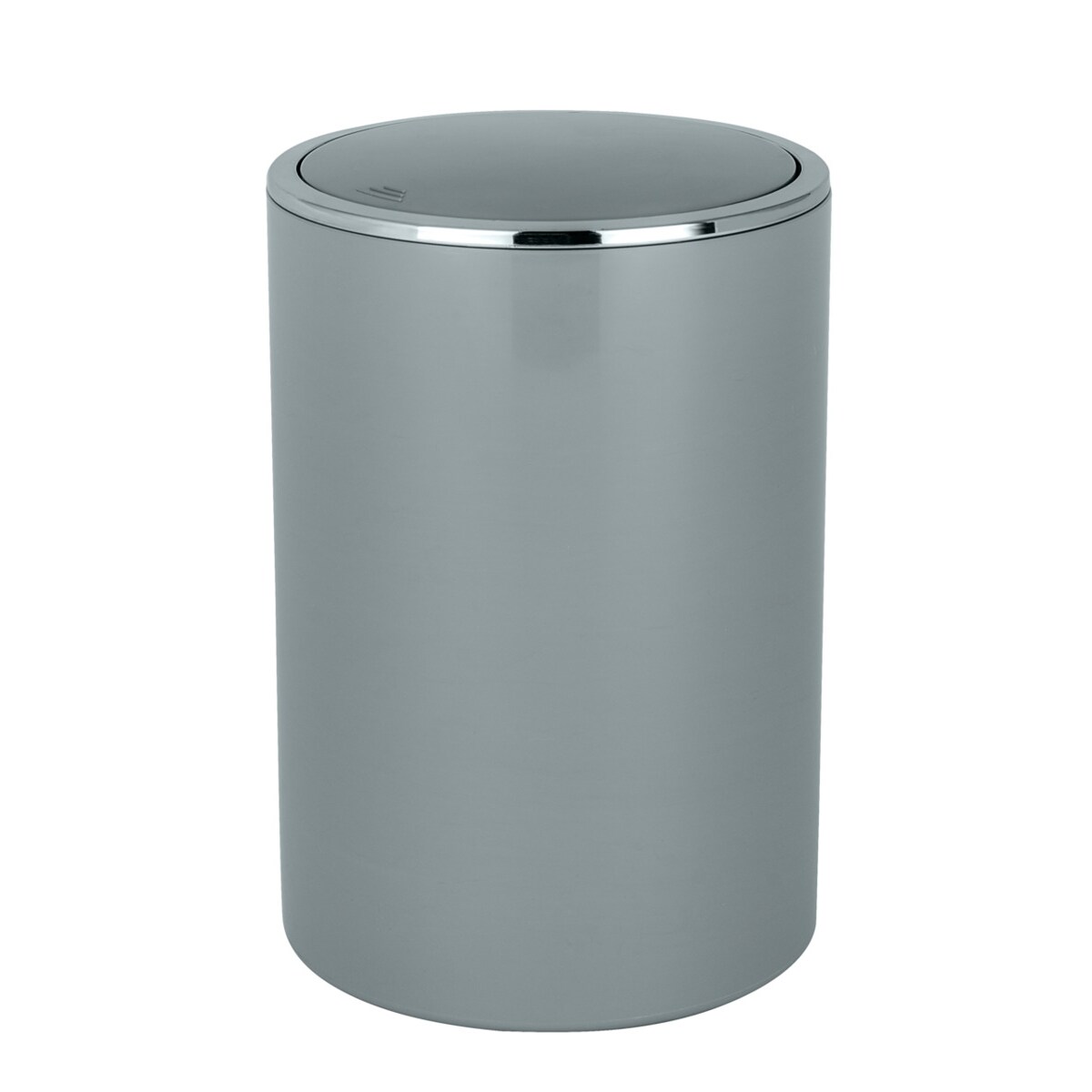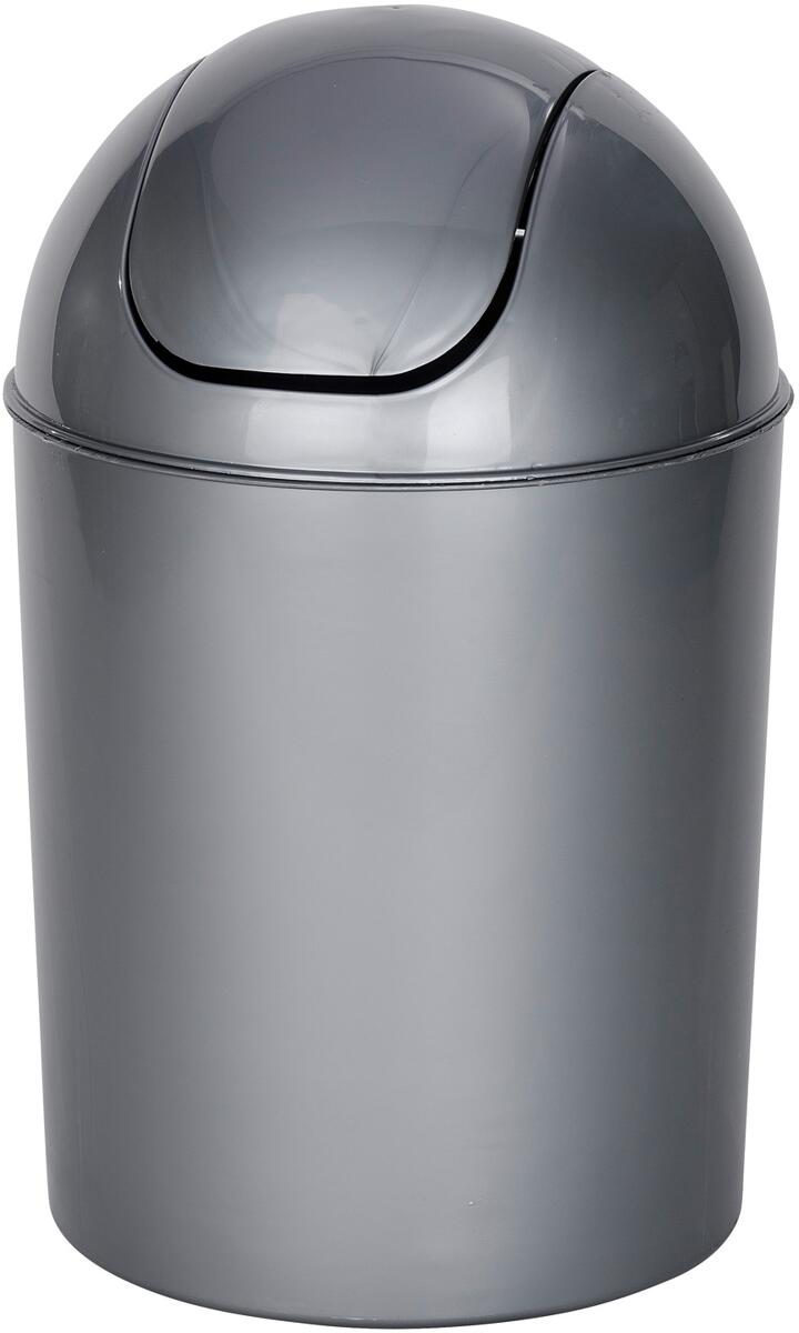 Schwingdeckeleimer grau, Kosmetikeimer 5l mit Schwingdeckel, Kunststoff, Mülleimer Badezimmer grau matt