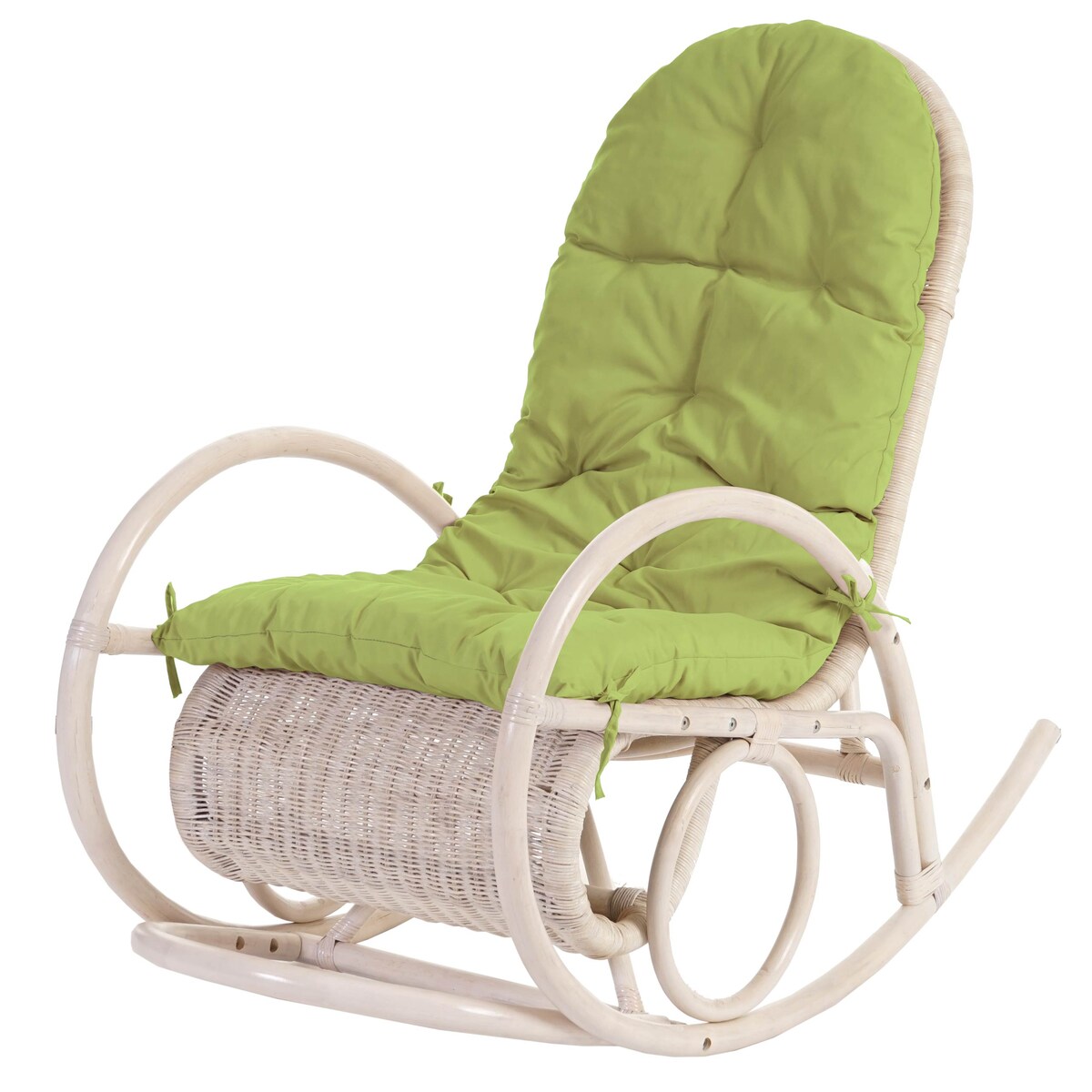 Mendler Schaukelstuhl Esmeraldas, Schwingsessel Rattansessel, weiß ~ Auflage grün