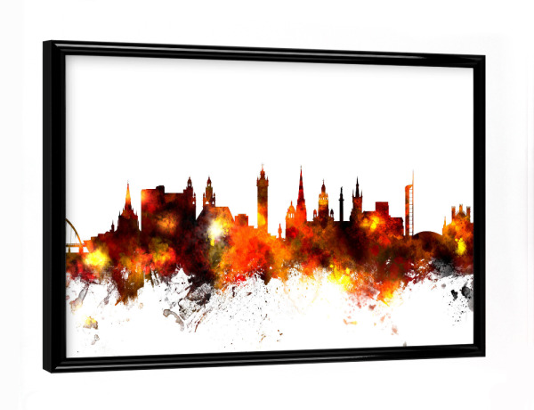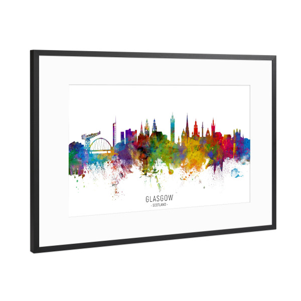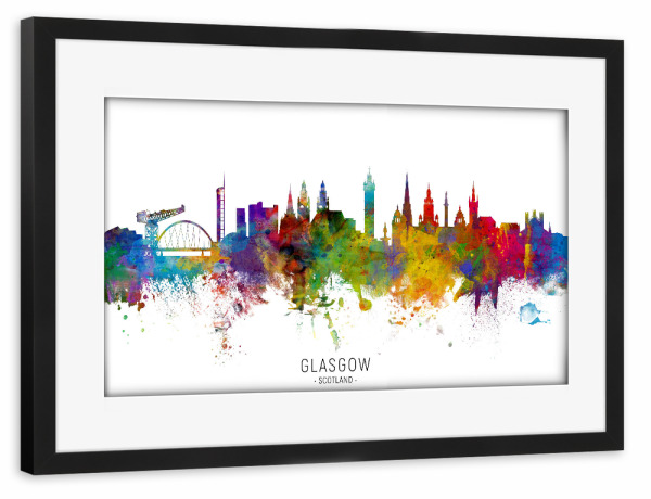 Poster mit Rahmen schwarz "Glasgow Scotland Skyline txt" artboxONE - Städte - Glasgow,Scotland,Skyline,Cityscape,Stadtbild,Watercolor,Painting