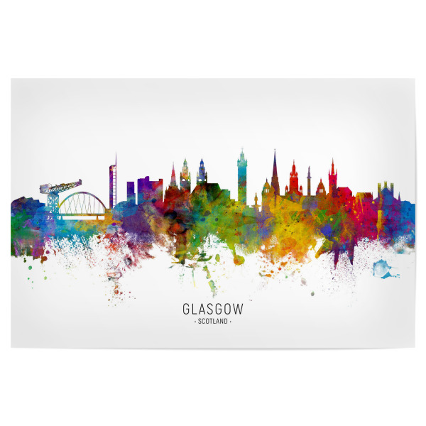 Poster "Glasgow Scotland Skyline txt" artboxONE - Städte - Glasgow,Scotland,Skyline,Cityscape,Stadtbild,Watercolor,Painting