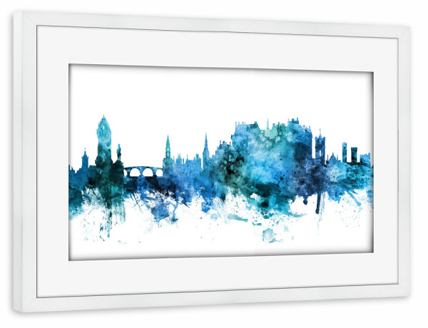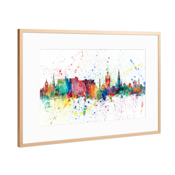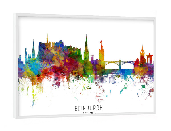 Poster mit weißem Rahmen "Edinburgh Scotland Skyline txt" artboxONE - Städte - Edinburgh,Scotland,Skyline,Cityscape,Stadtbild,Watercolor,Painting