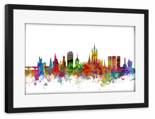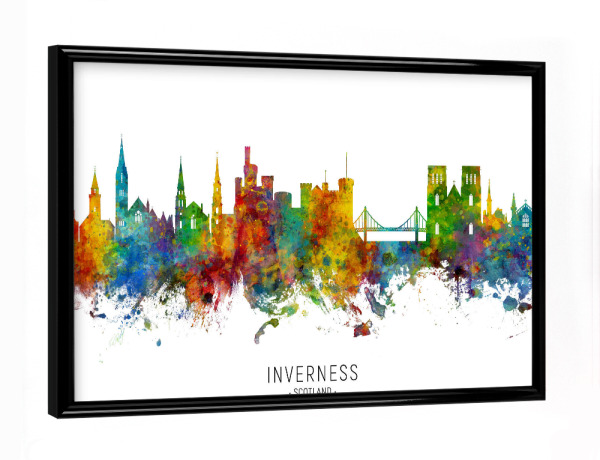 Poster mit schwarzem Rahmen "Inverness Scotland Skyline txt" artboxONE - Städte - Inverness,Scotland,Skyline,Cityscape,Stadtbild,Watercolor,Painting