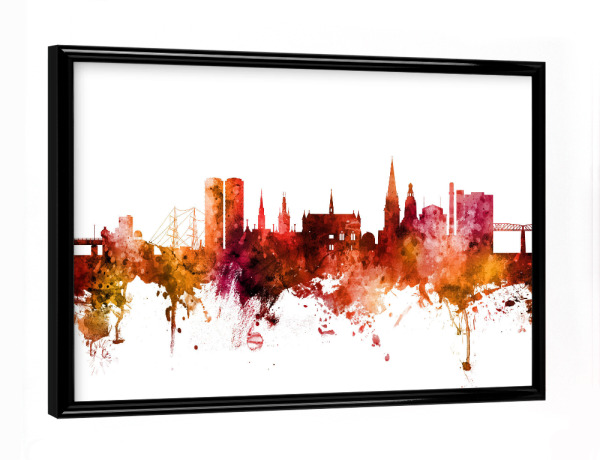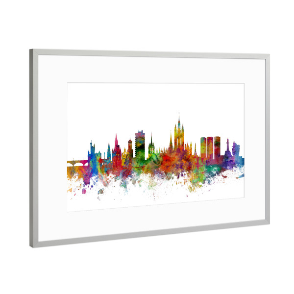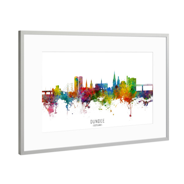 Poster mit Rahmen Silber "Dundee Scotland Skyline txt" artboxONE - Städte - Dundee,Scotland,Skyline,Cityscape,Stadtbild,Watercolor,Painting