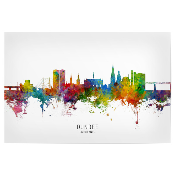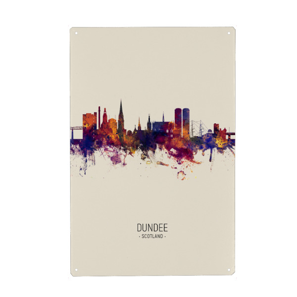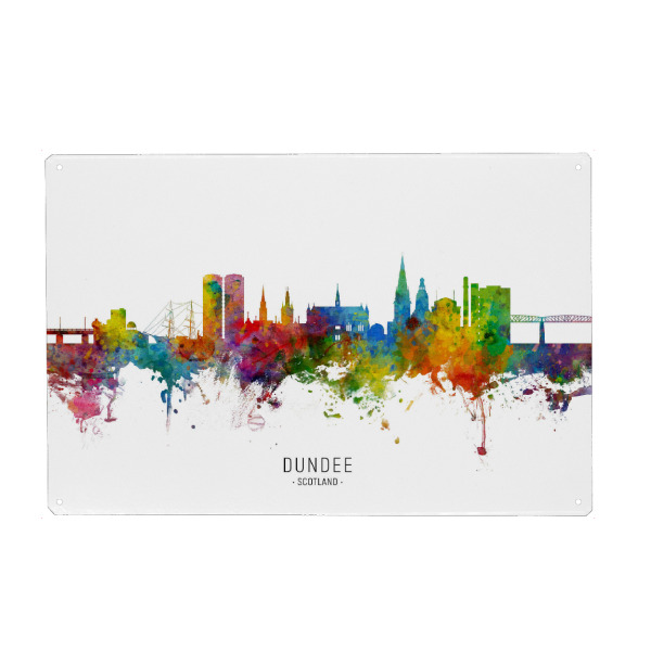 Metall Poster "Dundee Scotland Skyline txt" artboxONE - Städte - Dundee,Scotland,Skyline,Cityscape,Stadtbild,Watercolor,Painting - Blechschild