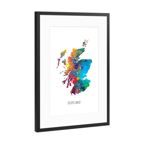 Poster mit Rahmen Schwarz (Metallic) "Scotland Watercolor Map" artboxONE - Kartografie - Scotland,Stadtkarte,Map,Watercolor,Painting