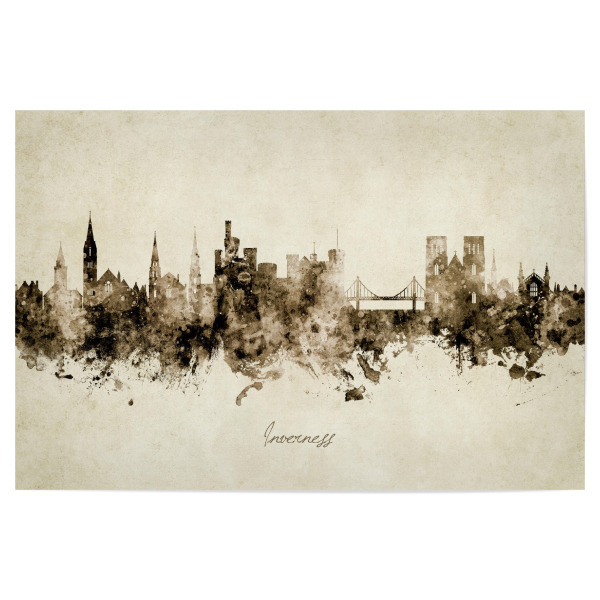Poster "Inverness Scotland Skyline Sepia" artboxONE - Städte - Inverness,Scotland,Skyline,Cityscape,Stadtbild,Watercolor,Painting