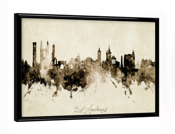 Poster mit schwarzem Rahmen "St Andrews Scotland Skyline Sepia" artboxONE - Städte