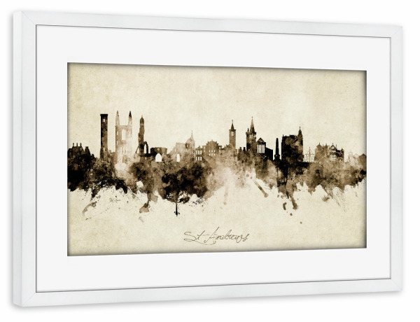 Poster mit Rahmen weiß "St Andrews Scotland Skyline Sepia" artboxONE - Städte - St andrews,Scotland,Skyline,Cityscape,Stadtbild,Watercolor,Painting