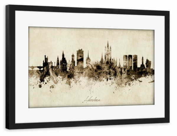 Poster mit Rahmen schwarz "Aberdeen Scotland Skyline Sepia" artboxONE - Städte - Aberdeen,Scotland,Skyline,Cityscape,Stadtbild,Watercolor,Painting