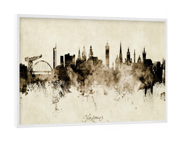 Poster mit weißem Rahmen "Glasgow Scotland Skyline Sepia" artboxONE - Städte - Glasgow,Scotland,Skyline,Cityscape,Stadtbild,Watercolor,Painting