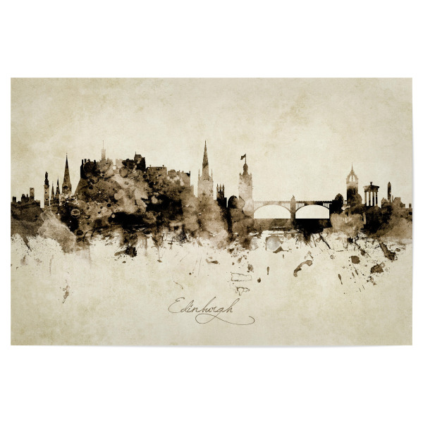 Poster "Edinburgh Scotland Skyline Sepia" artboxONE - Städte - Edinburgh,Scotland,Skyline,Cityscape,Stadtbild,Watercolor,Painting