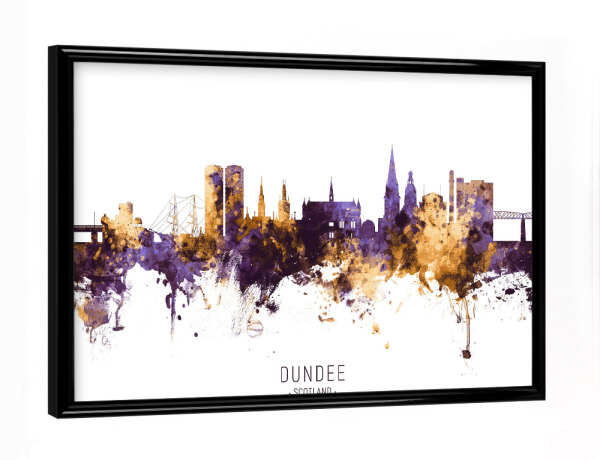 Poster mit schwarzem Rahmen "Dundee Scotland Skyline PurpleGold" artboxONE - Städte - Dundee,Scotland,Skyline,Cityscape,Stadtbild,Watercolor,Painting