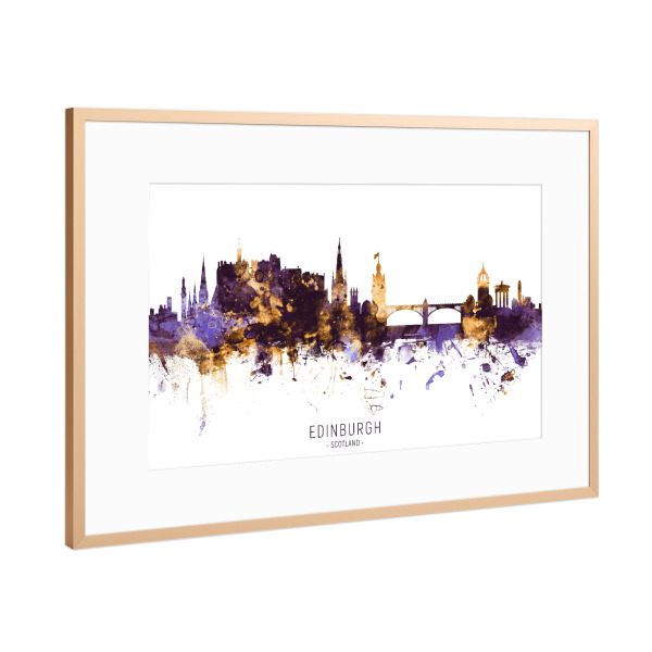 Poster mit Rahmen Kupfer "Edinburgh Skyline PurpleGold" artboxONE - Städte - Edinburgh,Scotland,Skyline,Cityscape,Stadtbild,Watercolor,City
