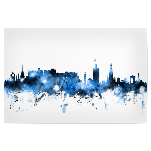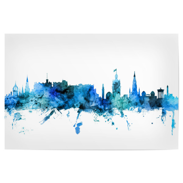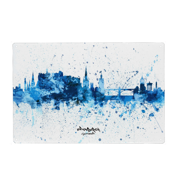Metall Poster "Edinburgh Skyline SplashBlue" artboxONE - Städte - Edinburgh,Scotland,Skyline,Cityscape,Stadtbild,Watercolor,City - Blechschild