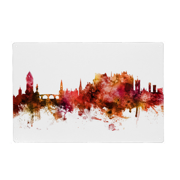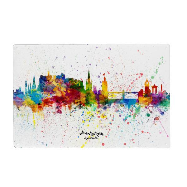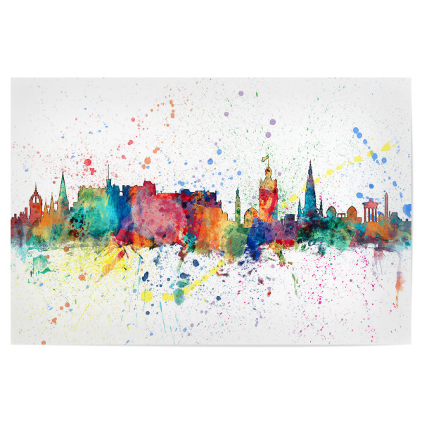 Metall Poster "Edinburgh Scotland Skyline Splash" artboxONE - Städte - Edinburgh,Scotland,Skyline,Cityscape,Stadtbild,Watercolor,City,Colorful