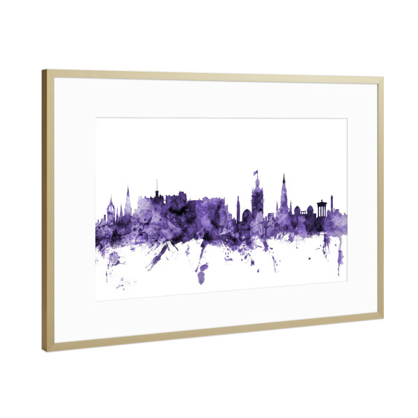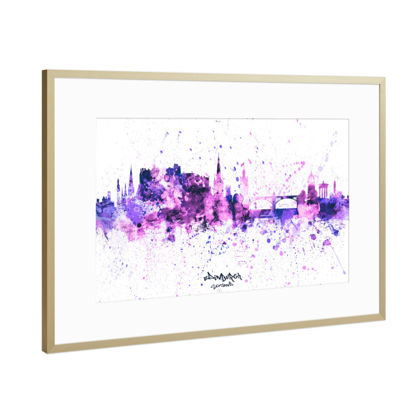Poster mit Rahmen Gold "Edinburgh Skyline PurplePink" artboxONE - Städte - Edinburgh,Scotland,Skyline,Cityscape,Stadtbild,Watercolor,Painting,City