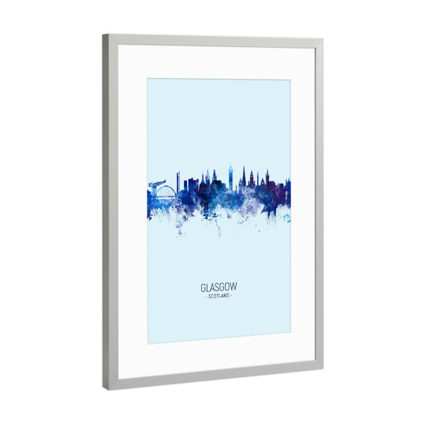 Poster mit Rahmen Silber "Glasgow Scotland Skyline Dark Blue" artboxONE - Städte