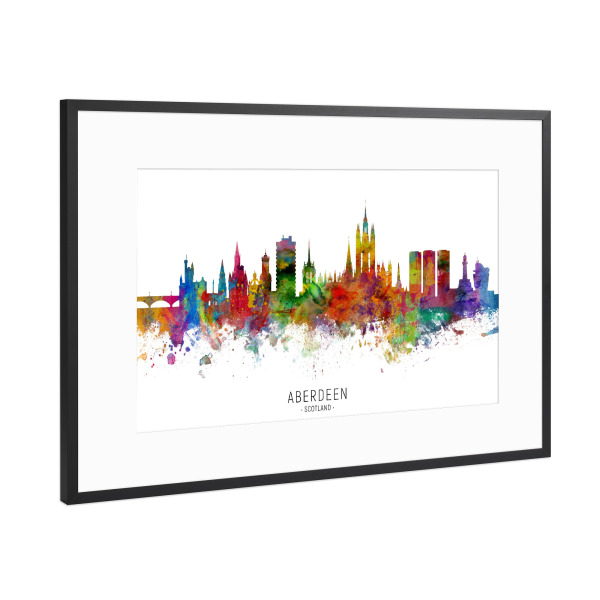 Poster mit Rahmen schwarz "Aberdeen Scotland Skyline" artboxONE - Städte,Reise