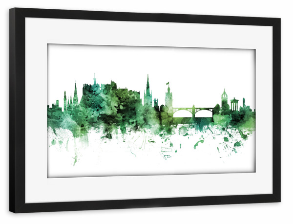 Poster mit Rahmen schwarz "Edinburgh Scotland Skyline Green" artboxONE - Städte