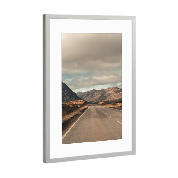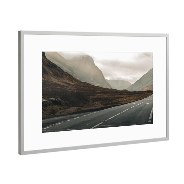 Poster mit Rahmen Silber "The road to the mountains" artboxONE - Natur,Reise,Reise / Länder - Scotland,Schottland,Scottish highlands,Highlands,Road