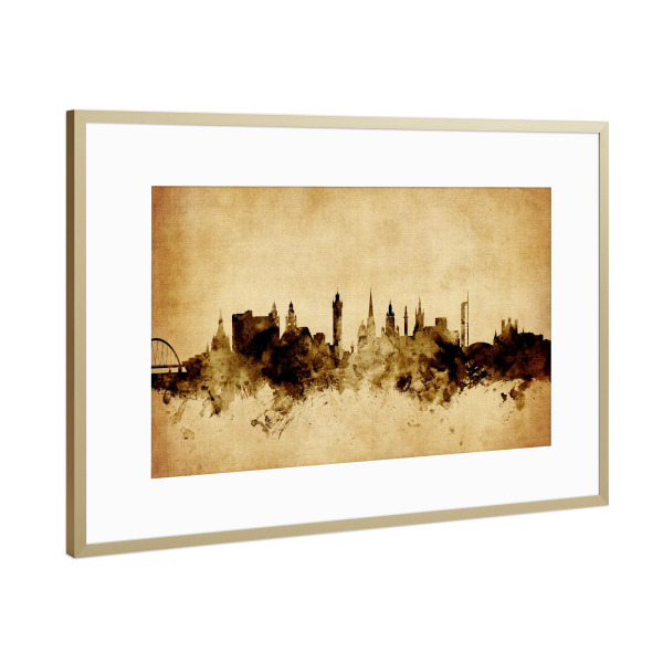 Poster mit Rahmen Gold "Glasgow Scotland Skyline 4" artboxONE - Städte,Reise