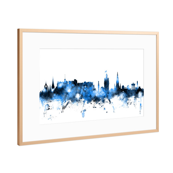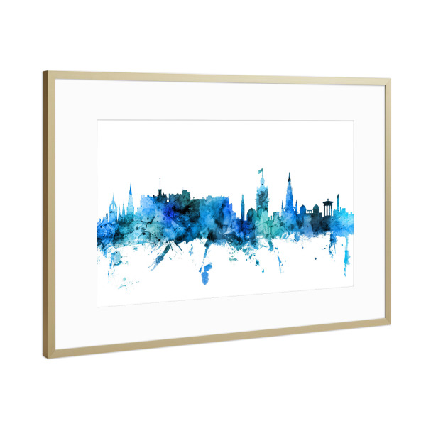 Poster mit Rahmen Gold "Edinburgh Scotland Skyline Blue" artboxONE - Städte,Reise