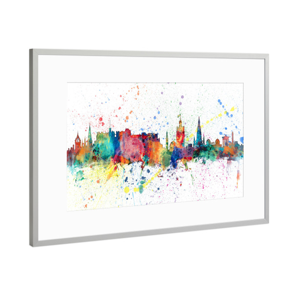 Poster mit Rahmen Silber "Edinburgh Scotland Skyline Splash" artboxONE - Städte