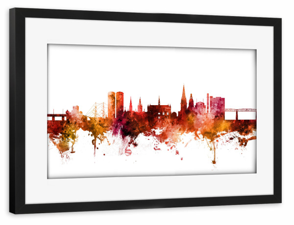 Poster mit schwarzem Rahmen "Dundee Scotland Skyline Red" artboxONE - Städte / Weitere - Dundee,Skyline,Scotland