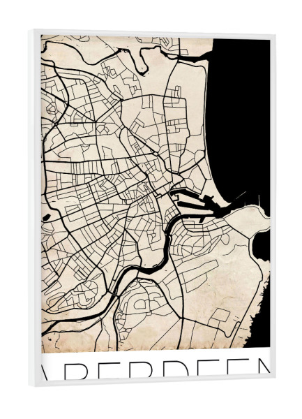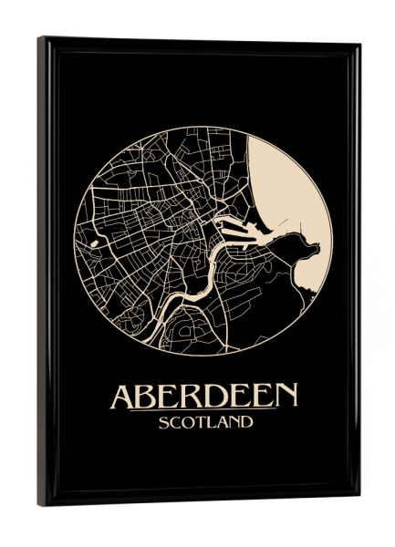 Poster mit schwarzem Rahmen "Aberdeen Scotland Map" artboxONE - Städte,Kartografie - Map,Aberdeen,Scotland