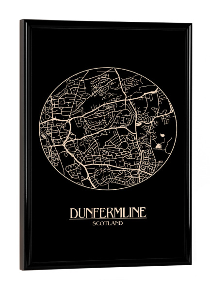 Poster mit schwarzem Rahmen "Retro Map Dunfermline Round" artboxONE - Städte / Weitere,Kartografie - Retro,Map,Dunfermline,Scotland,Vintage