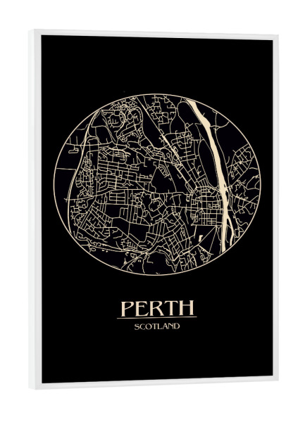 Poster mit weißem Rahmen "Retro Map Perth Black Round" artboxONE - Städte,Reise,Städte / Weitere,Kartografie - Map,Perth,Scotland,Retro map